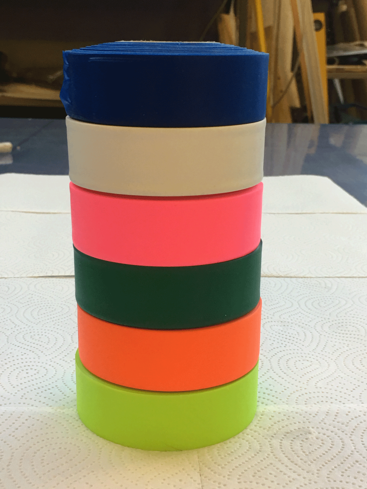 Vi producerer også Polybånd, også kaldet Minestrimmel i daglig tale, i 50 mm og 75 mm med navn og/eller logo.