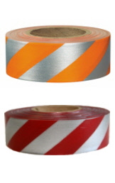 Vi kan ny også levere minestrimmel som kan ses både dag og nat. De fås i to farver, orange/sølv eller rød/sølv, det er ikke muligt at få logo på disse, til gengæld sælges de enkeltvis. Rullerne har knap 100 meter på og er 30 mm brede og koster kr. 35,- pr. stk.