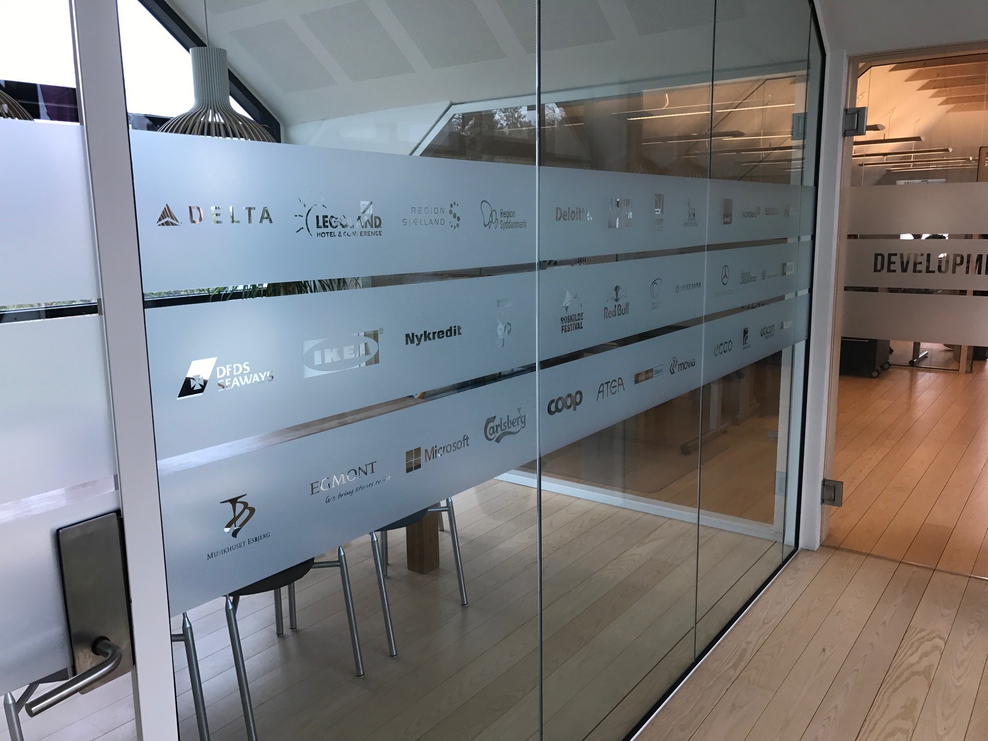 Sandblæst look til vinduet anvendes ofte til badeværelses vinduer, mødelokaler m.m., hvor man ikke ønsker at kunne kigge igennem, men stadig gerne vil have lys ind.